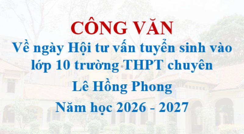 • Công văn về ngày Hội tư vấn tuyển sinh vào lớp 10 trường THPT chuyên Lê Hồng Phong năm học 2026 - 2027