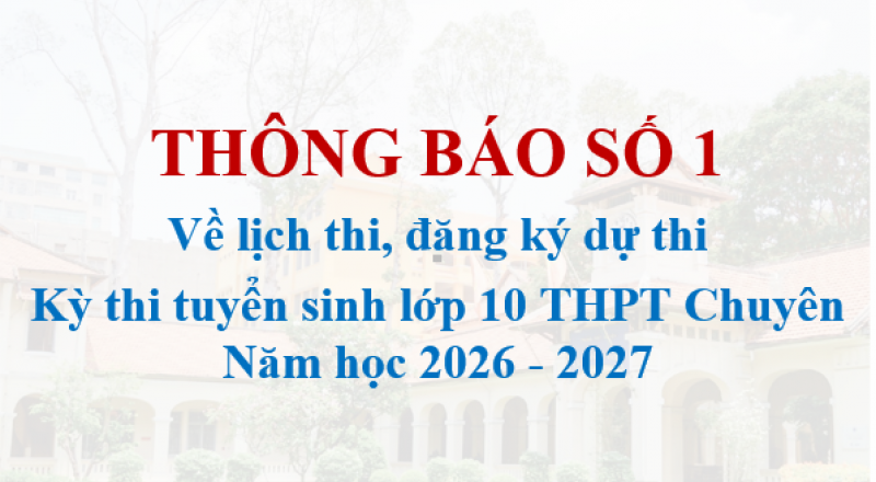 • Thông báo số 1- Về lịch thi, đăng ký dự thi Kỳ thi tuyển sinh vào lớp 10 THPT Chuyên năm học 2026 - 2027