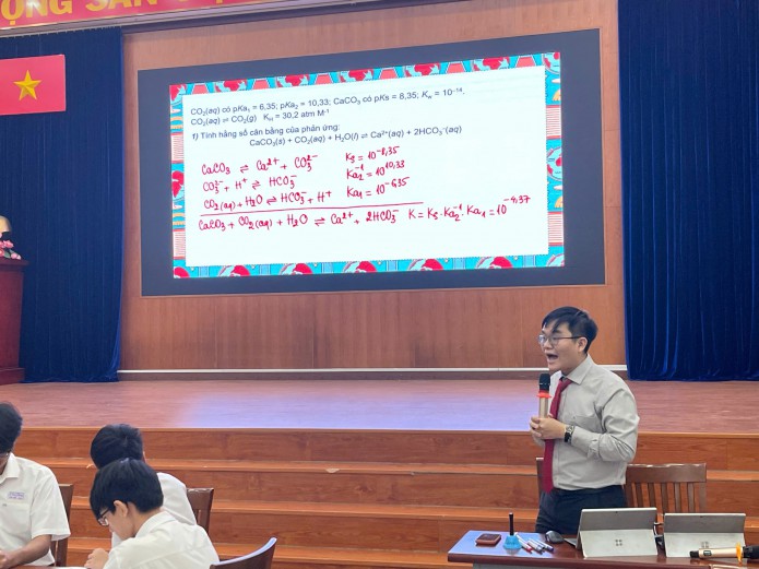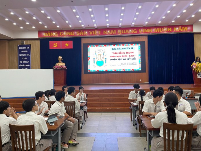 Nhằm chia sẻ kinh nghiệm triển khai các nội dung dạy học chuyên sâu cho HS khối chuyên Hoá trong phạm vi của chuyên đề Hoá học phân tích, theo kế hoạch của Tổ chuyên môn, ngày 28/1/2026,  tổ Hoá học của trường THPT chuyên Lê Hồng Phong đã tổ chức buổi báo cáo chuyên đề "Cân bằng trong dung dịch acid - base" - Luyện tập và kết nối của Thầy Đỗ Hoàng Phúc