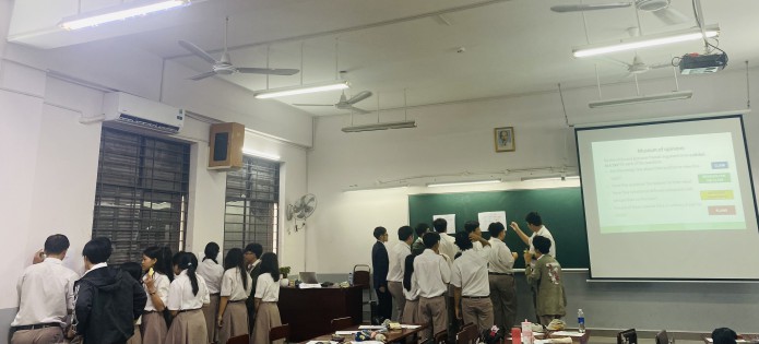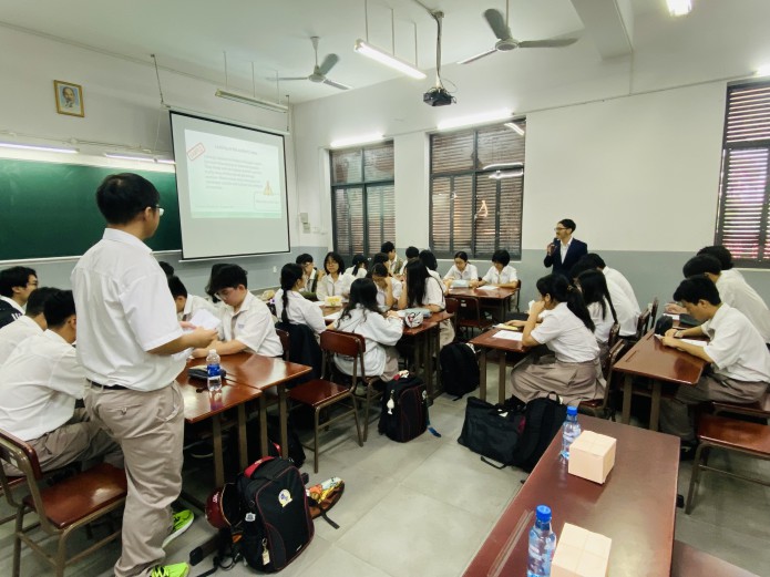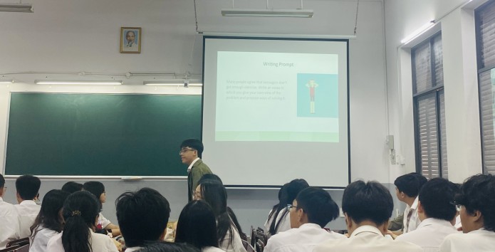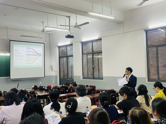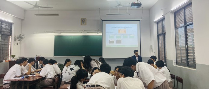 Thầy Nguyễn Hoàng Minh Triết đã đại diện Tổ trình bày về phương pháp tìm ý tưởng viết (Brainstorming) bằng cách ứng dụng tư duy phản biện (Critical Thinking). Sau khi đã áp dụng ở các lớp khác và rút kinh nghiệm từ góp ý của Tổ bộ môn, trong buổi Sinh hoạt chuyên môn, Thầy Triết tổ chức các hoạt động minh hoạ với học sinh lớp 11CA2 dựa trên Lesson 3H – Writing (Friends Global 11). Sau phần minh hoạ, các giáo viên đã có những trao đổi sôi nổi về chủ đề Báo cáo và bài giảng.