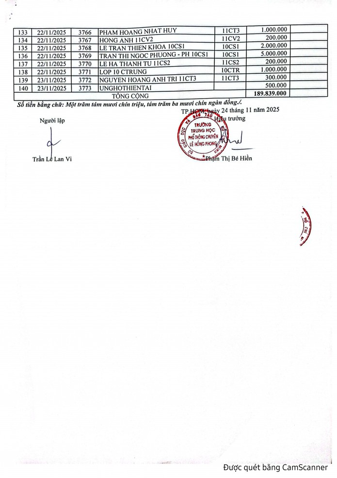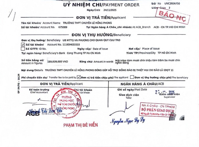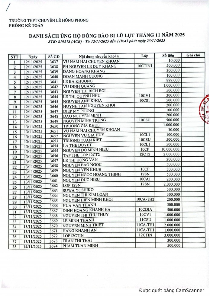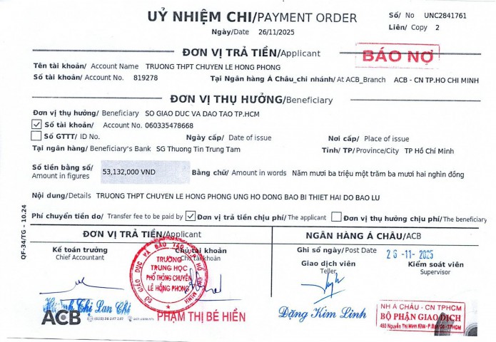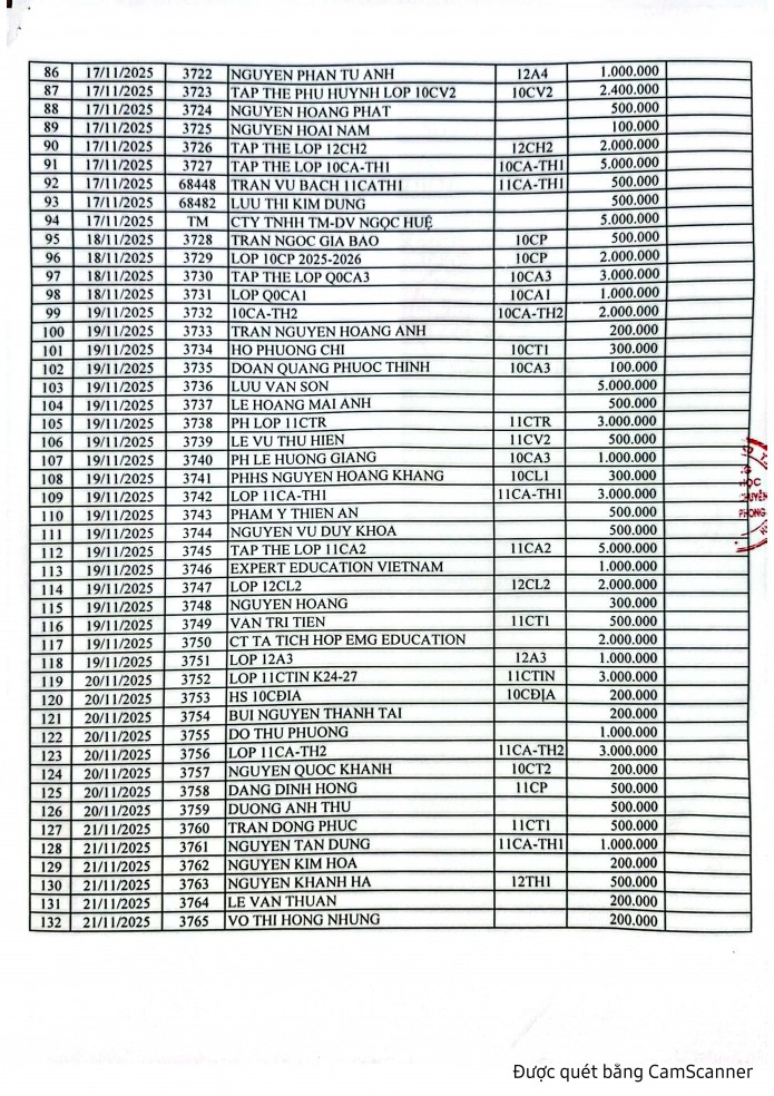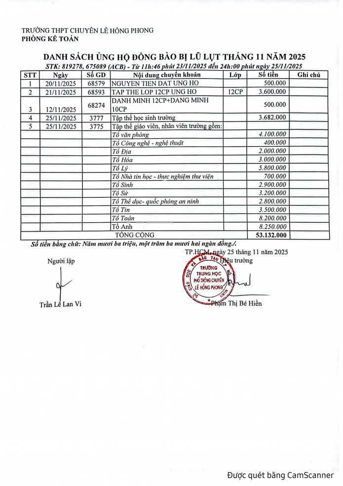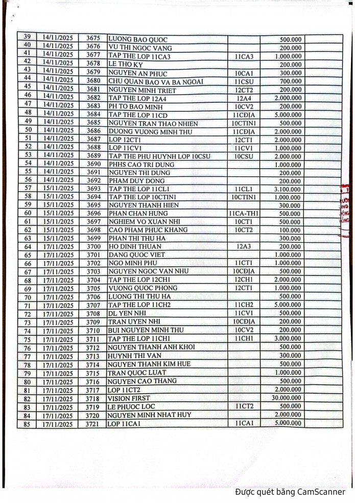 Danh sách ủng hộ đồng bào bị thiệt hại do bão lũ tháng 11/2025