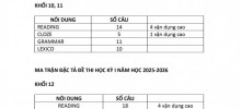 Ma trận đặc tả bài Kiểm tra cuối Học kì I năm học 2025-2026 - Môn Tiếng Anh