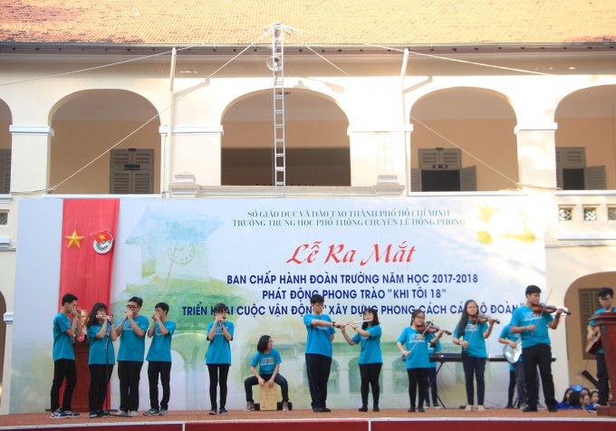 Sáng nay 30/10/2017 trườngTHPT chuyên Lê Hồng Phong đã tổ chức chào cờ đầu tuần và Lễ ra mắt BCH Đoàn trường năm học 2017 – 2018, phát động phong trào “Khi tôi 18”, triển khai cuộc vận động xây dựng phong cách Cán Bộ Đoàn.