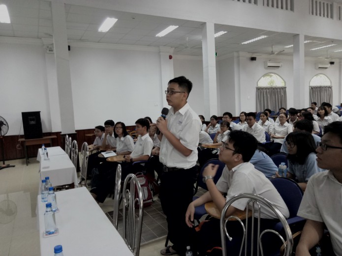 TS. Đoàn Xuân Quang Minh đang giới thiệu với học sinh về một số vấn đề trong Y sinh học.