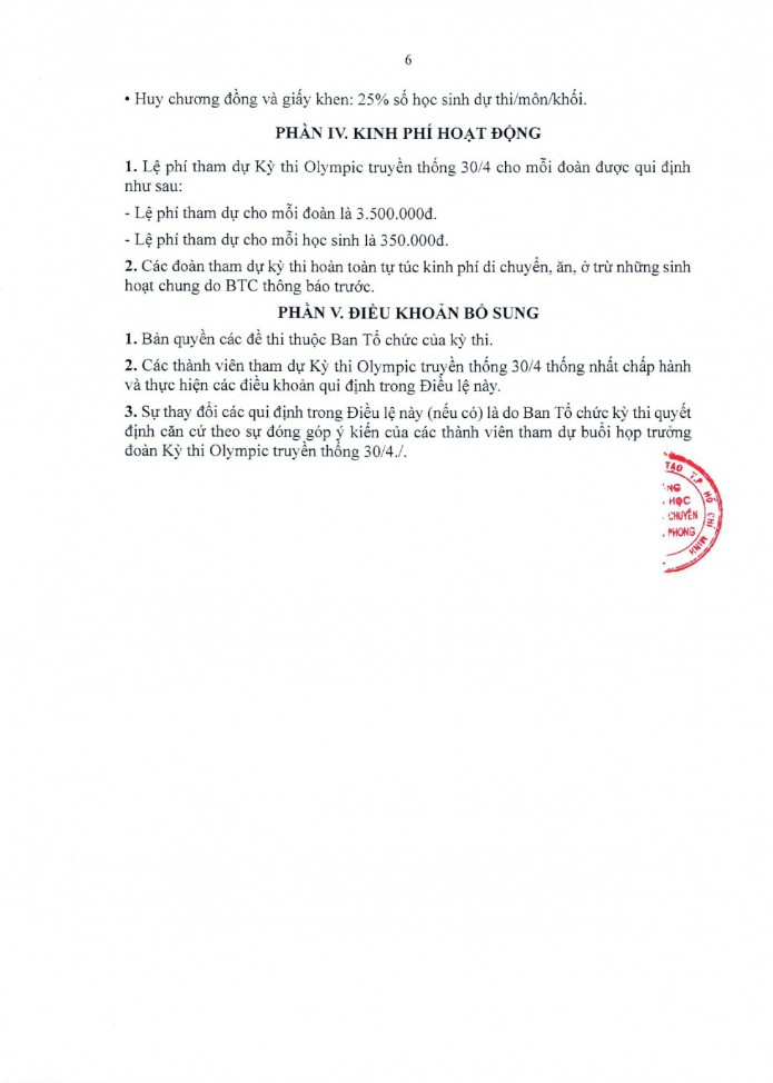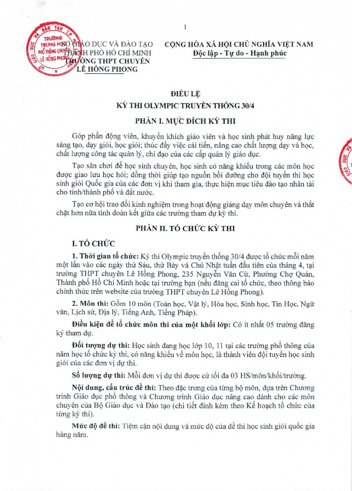 Điều lệ Kỳ thi Olympic truyền thống 30/4