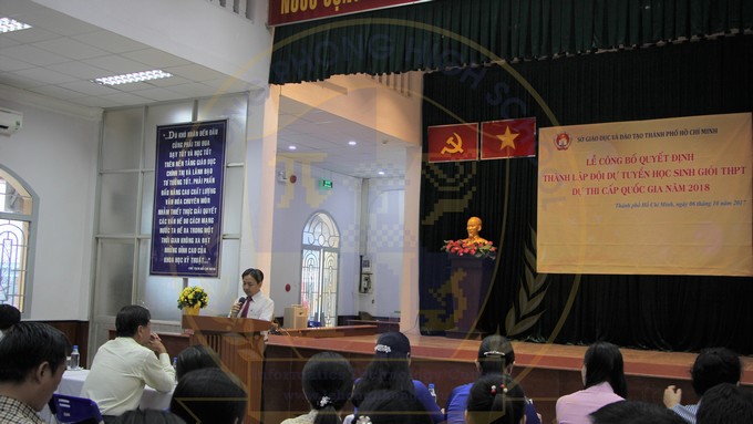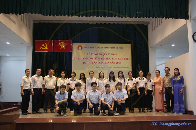 Sáng ngày 06/10/2017, tại Hội trường trường THPT Chuyên Lê Hồng Phong, đã diễn ra Lễ công bố quyết định thành lập đội dự tuyển Học sinh giỏi THPT dự thi cấp Quốc gia năm học 2017-2018 do Sở Giáo dục và Đào tạo TP.HCM tổ chức.