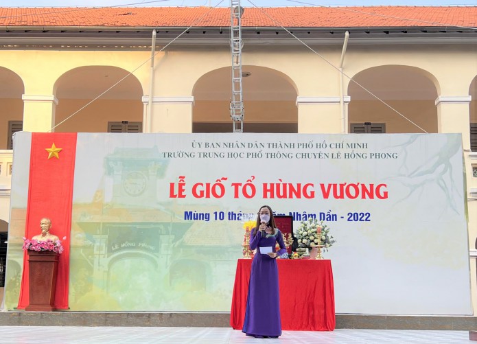 Với niềm ngưỡng vọng thiêng liêng ấy, sáng ngày 09/04/2022, tại sân trường THPT chuyên Lê Hồng Phong, tập thể GV-NV và HS đã lập bàn thờ Quốc tổ để dâng lên những nén hương tỏ lòng thành kính biết ơn sâu sắc với các bậc tiền nhân - những người đã có công dựng nên đất nước.