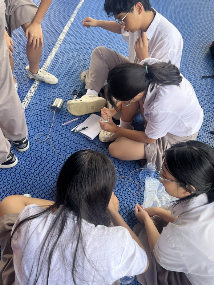 Vừa qua, trong khuôn khổ sinh hoạt chuyên môn HKI (NH 2025–2026), Tổ Vật lý trường THPT Chuyên Lê Hồng Phong đã tổ chức một hoạt động học tập trải nghiệm sôi nổi, hướng đến việc “học bằng trải nghiệm – hiểu bằng quan sát”. Thay vì chỉ dừng lại ở lý thuyết, các em học sinh lớp 11CA-TH1 được trực tiếp tham gia trò chơi truyền tin bằng điện thoại dây – một hoạt động đơn giản nhưng giàu ý nghĩa, giúp kiến thức về sóng âm trở nên gần gũi và dễ cảm nhận hơn bao giờ hết. Tiết học được giảng dạy bởi thầy Trần Hồng Nghĩa và cô Đào Thị Phương Tâm cùng với sự hỗ trợ của các thầy cô của tổ Vật lý.