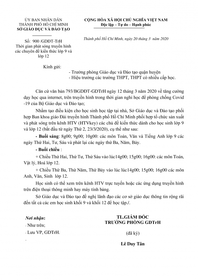 Thời gian phát sóng truyền hình các chuyên đề kiến thức lớp 9 và lớp 12